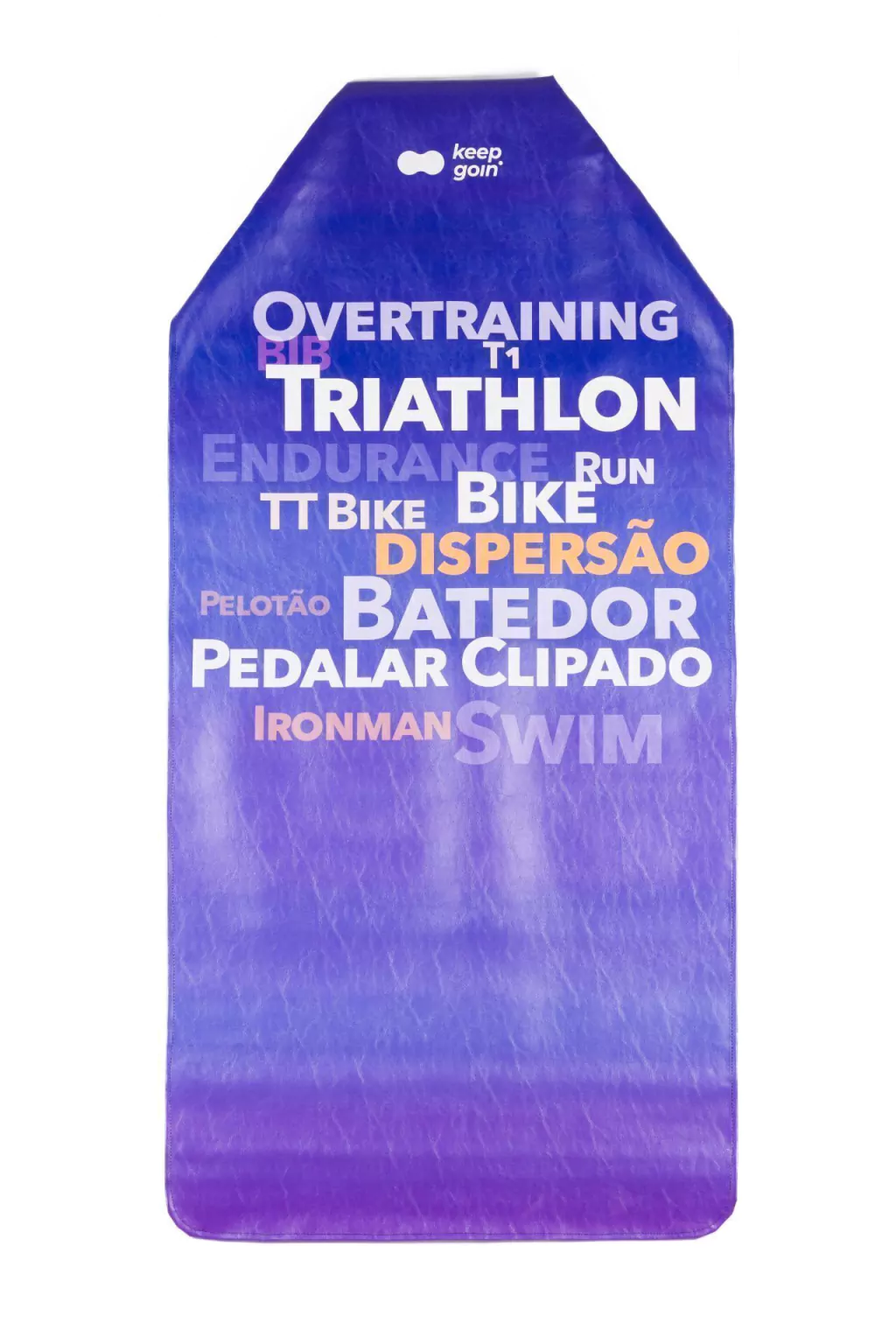A Arte "Nuvem de Palavras - Triathlon - Degradê Roxo" impressa neste modelo de capa é um trabalho autoral realizado pelos designers da Marca que traz na arte gírias e jargões conhecidos no mundo do Triathlon.